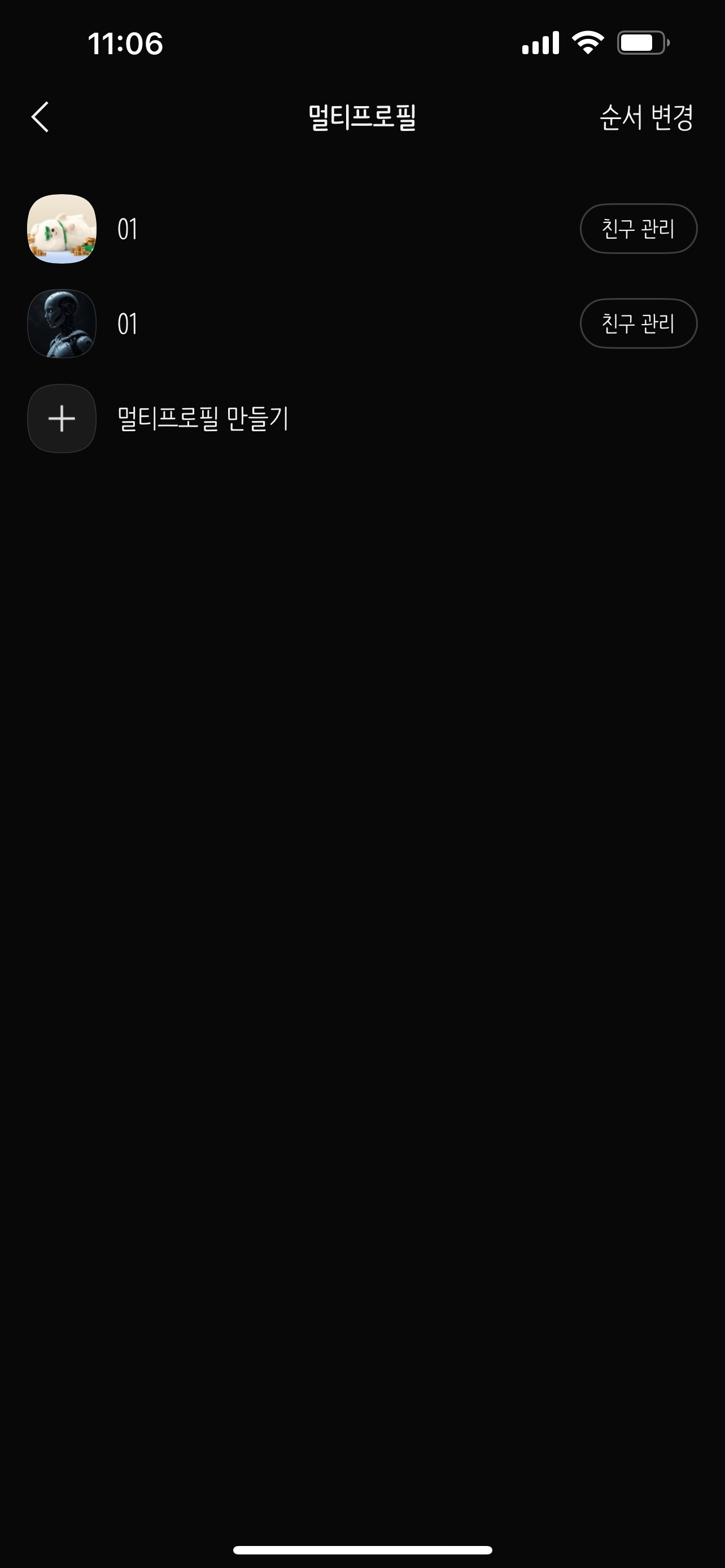 2. '멀티프로필 만들기' 선택: 내 기본 프로필 바로 아래에 있는 '+' 모양의 '멀티프로필 만들기' 버튼을 눌러주세요.
