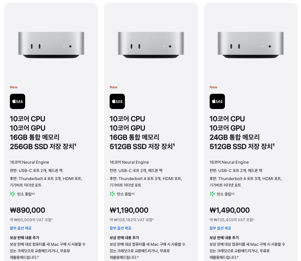 관련 자료 출처 : 애플 공식 판매처 ( https://www.apple.com/kr/mac-mini/)